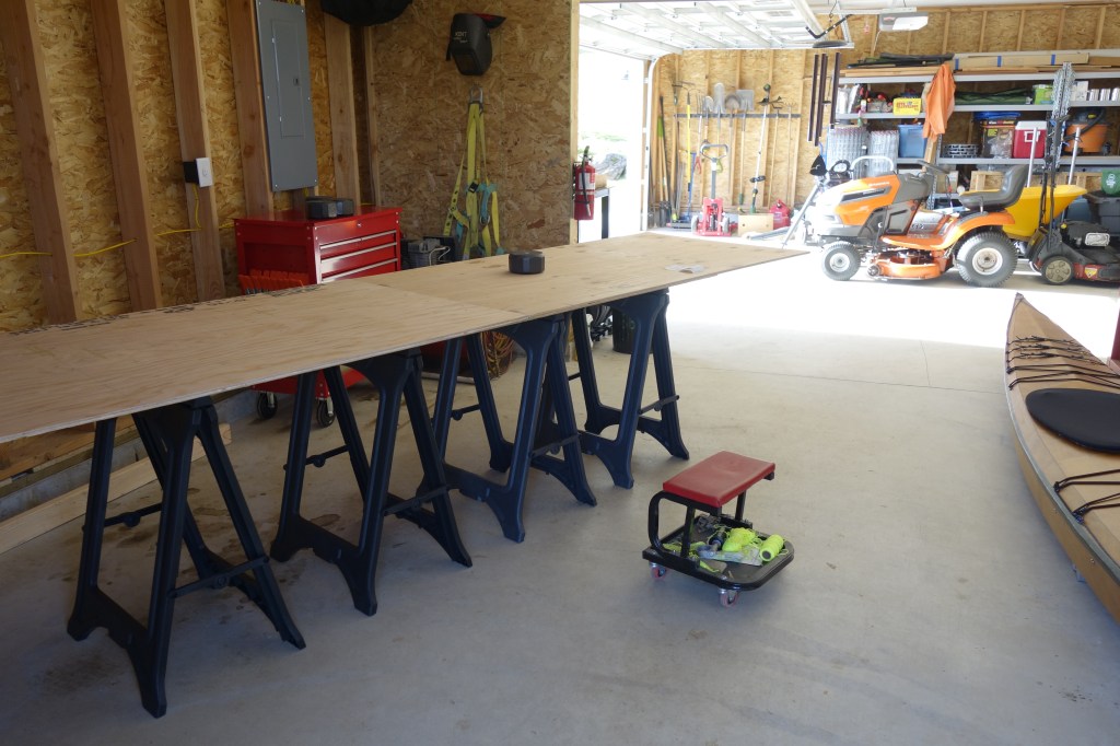I built a platform out of saw horses, 2 X 12s, and a couple of sheets of plywood, and made sure that it was flat and level.