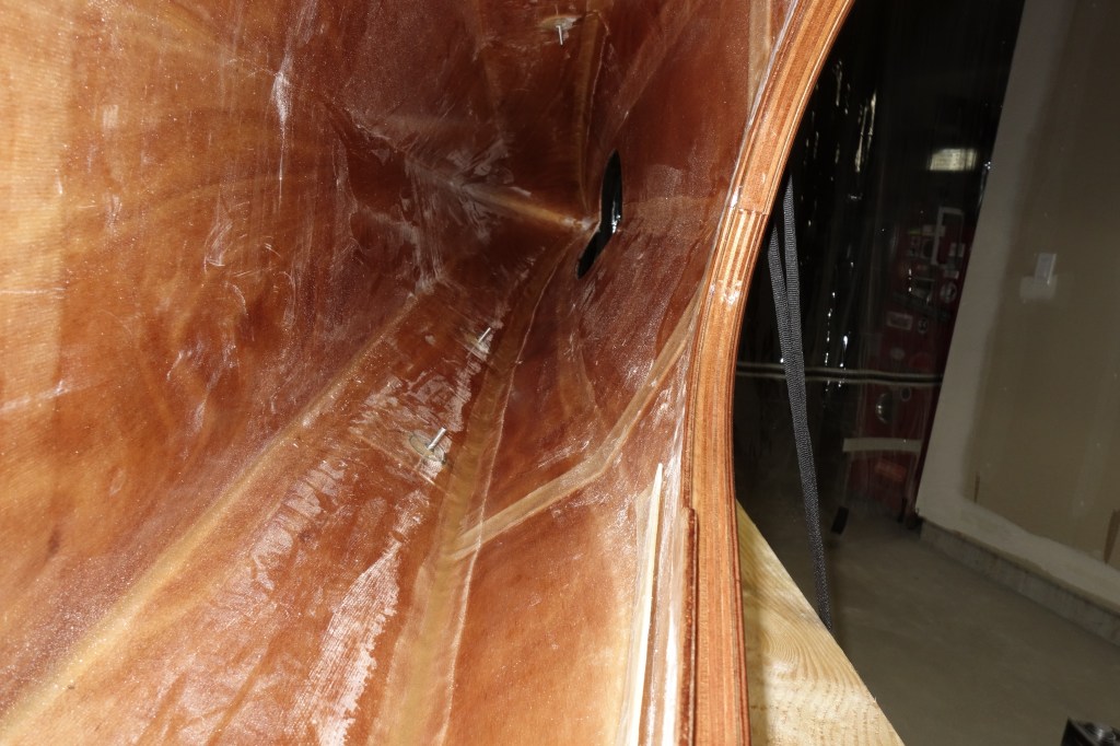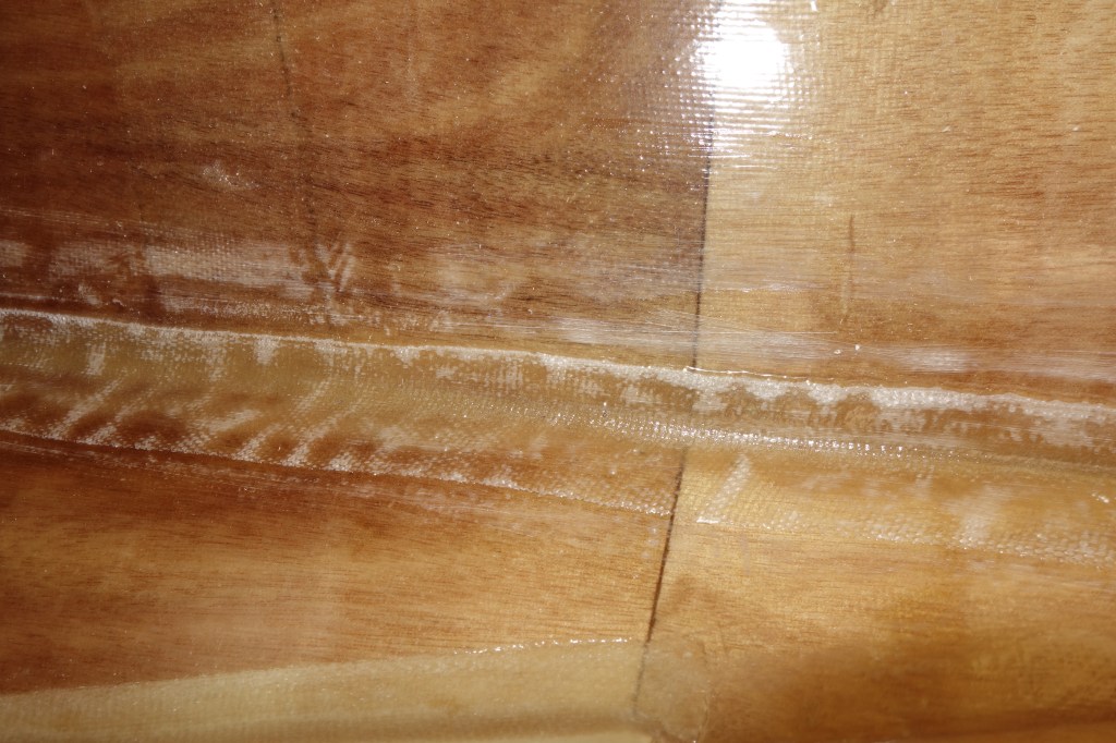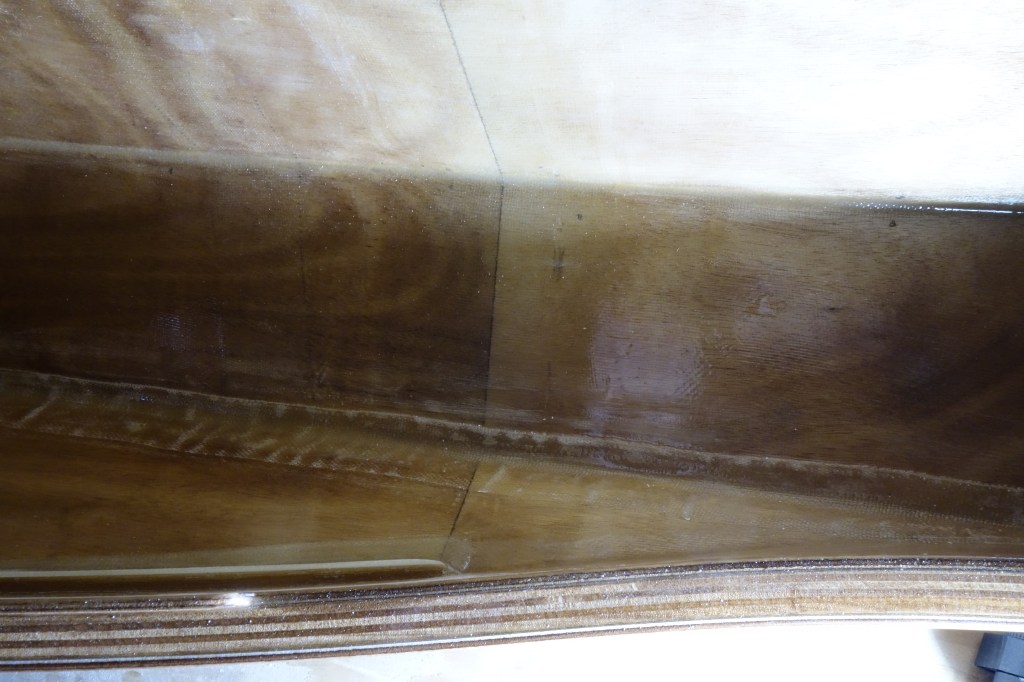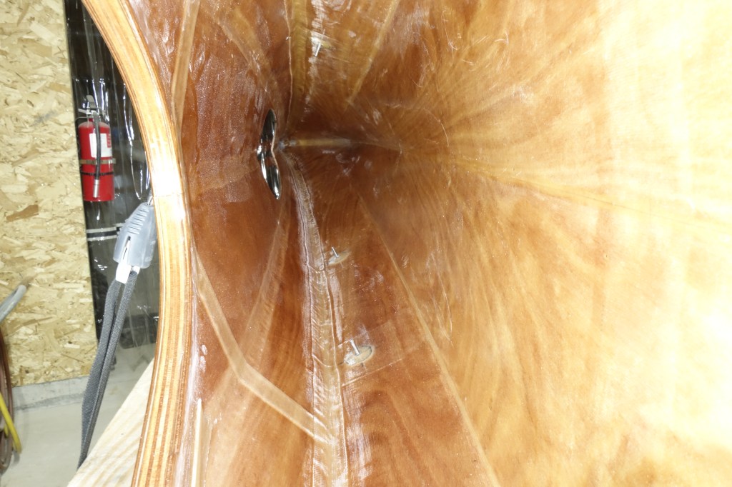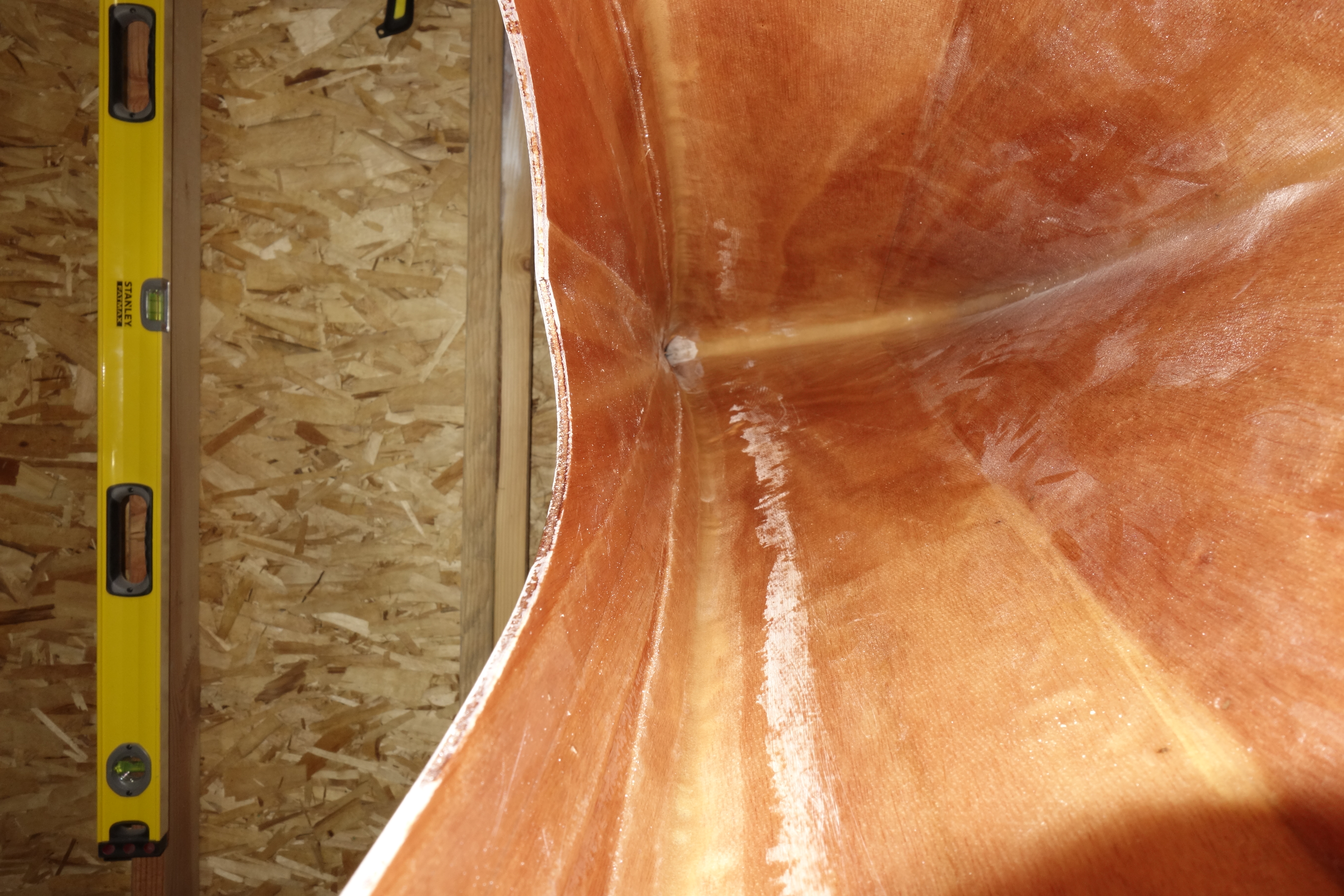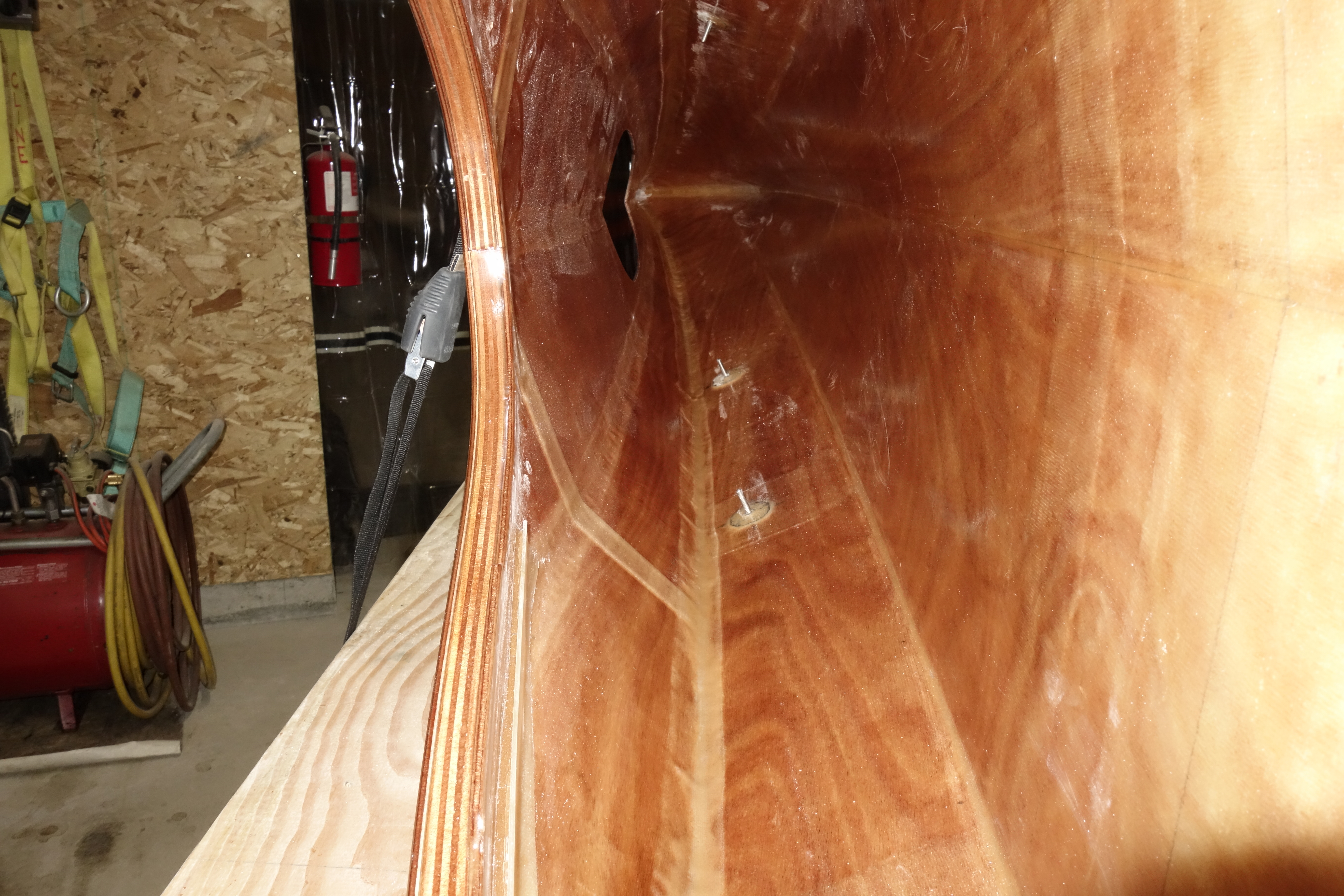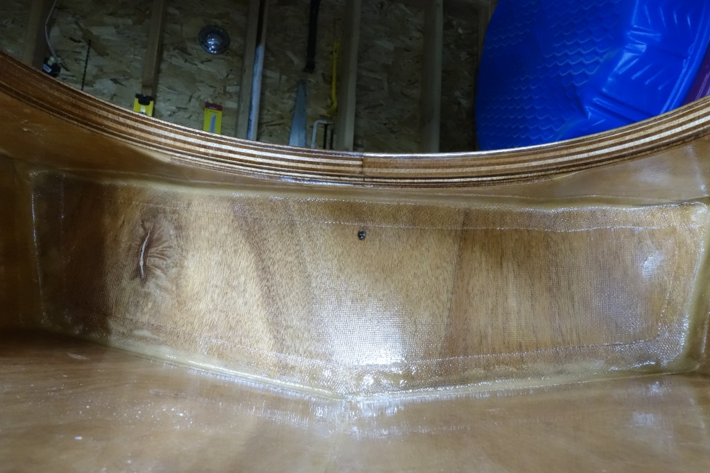 Looking toward the bow. After the epoxy cures this will all get cleaned up, lightly sanded where needed, and made shiny. It will look much better when I am done, I promise.Looking toward the stern. Bow again.