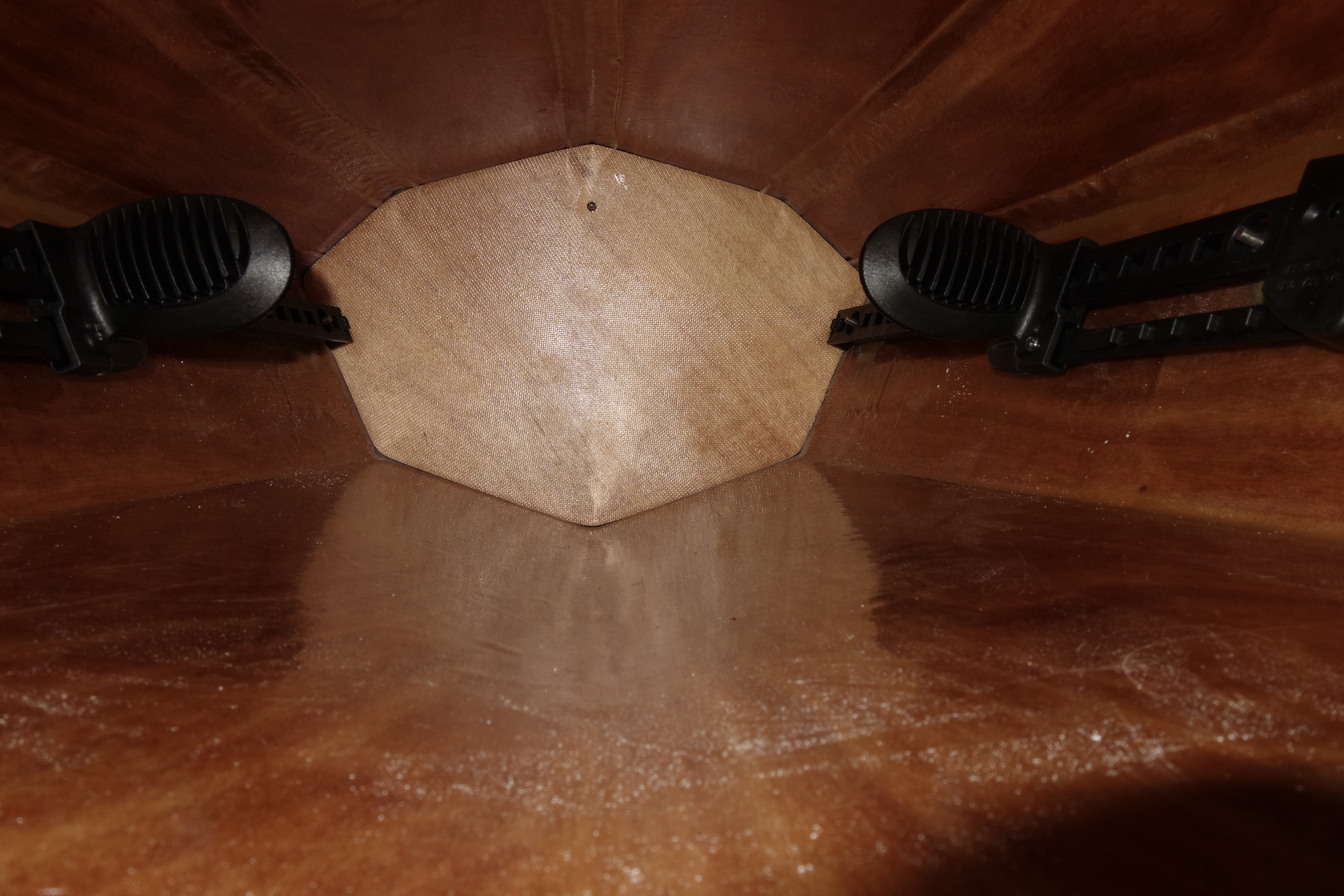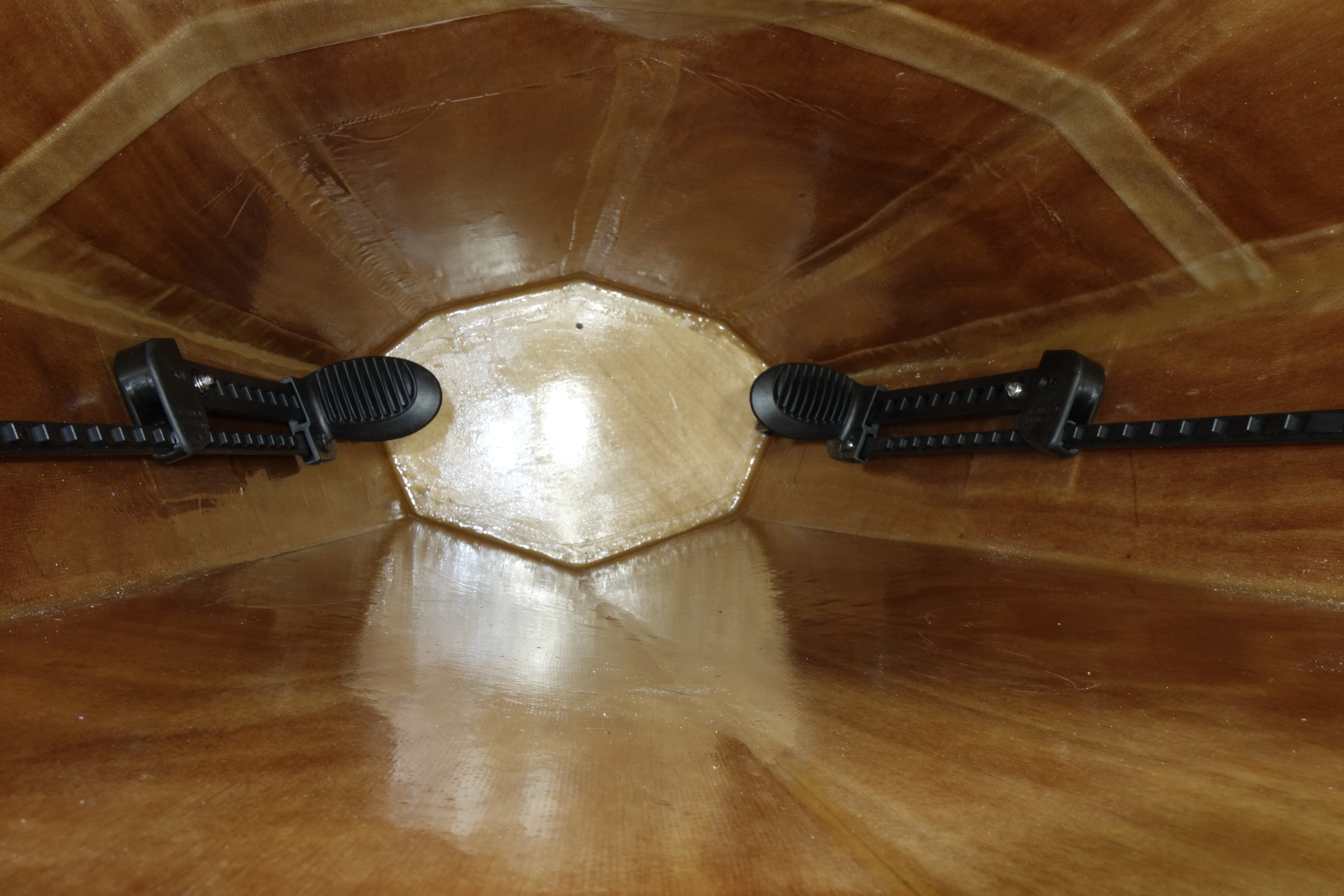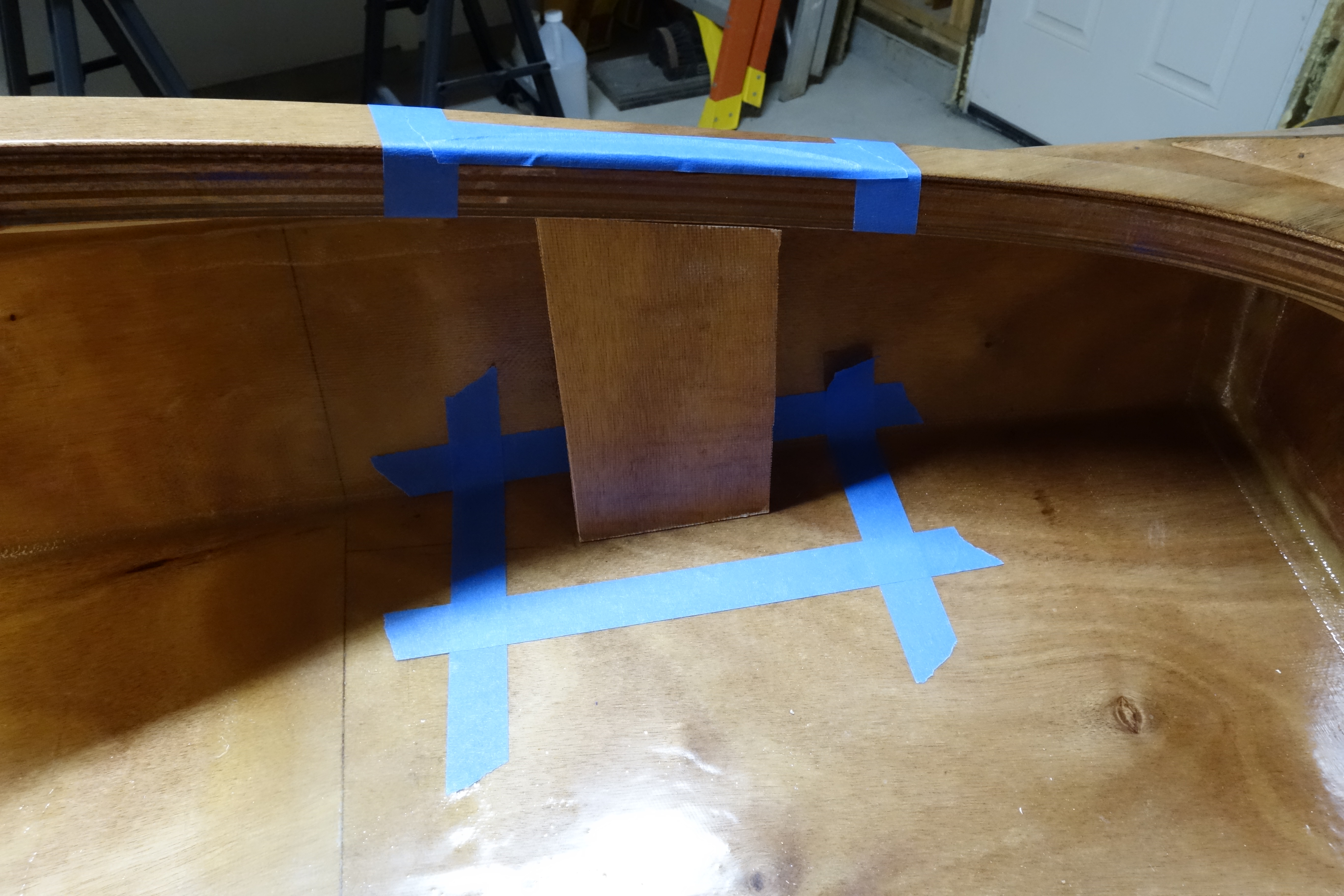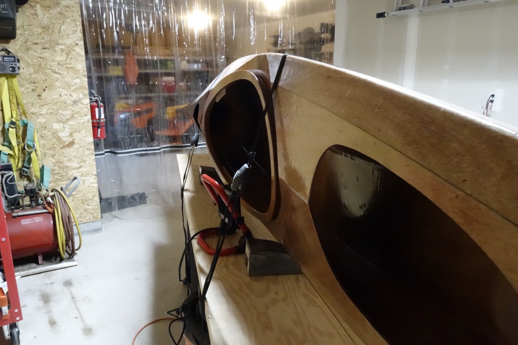 The entire inside of the kayak will be cleaned and I’ll lightly sand any high spots in the tape and give it a light coat of epoxy, and then my plan is to put one coat of varnish over the entire inside of the kayak. EDIT: I talked with Suzanne at Pygmy Boats today and asked about varnishing inside the kayak, and she said in no uncertain terms, that it was a bad idea and that Pygmy advises against it. OK then. No varnish on the inside of the kayak. I’ll have to figure out another way to make the inside pretty.