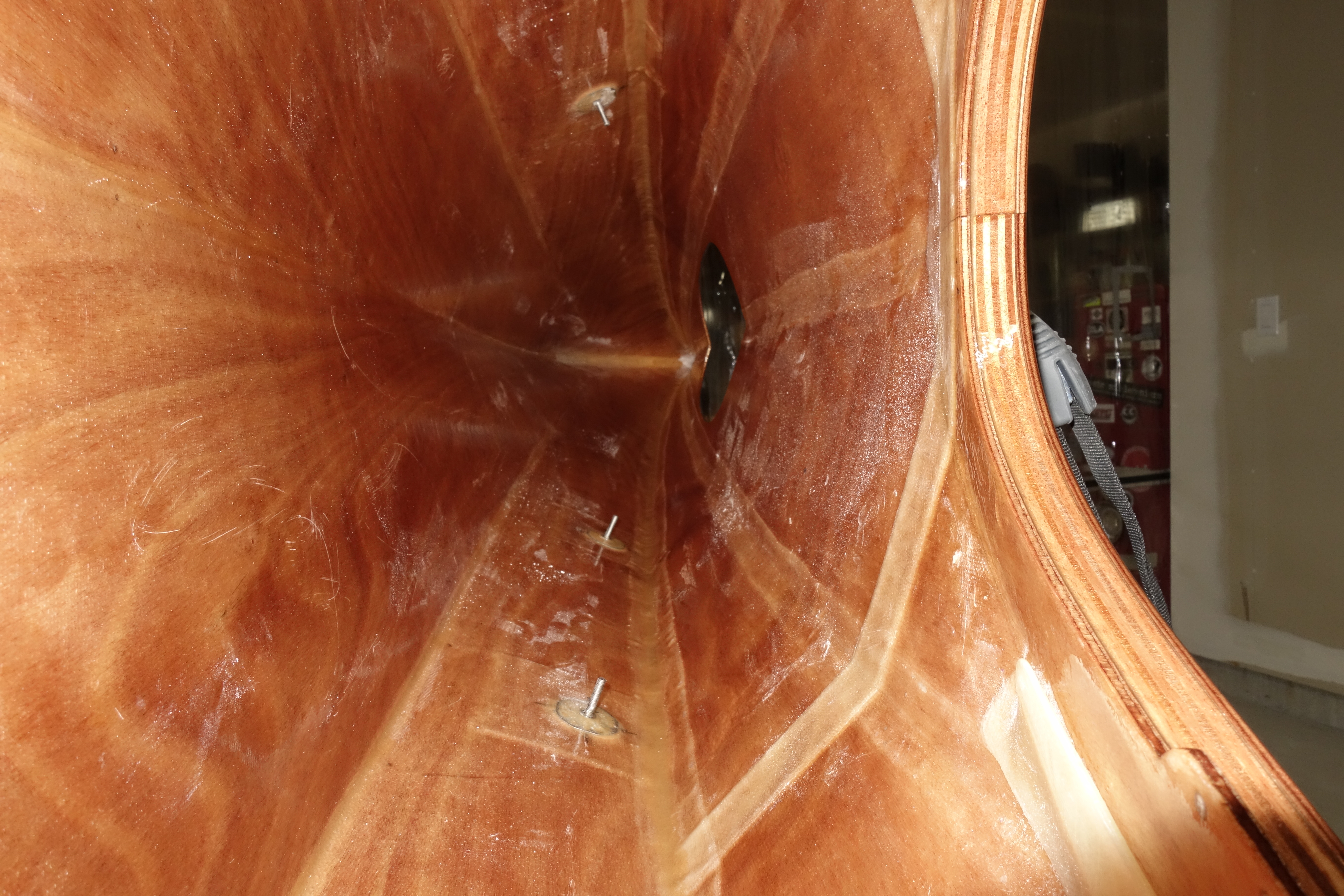 Sanding where the aft bulkhead will live.I had not yet sanded the bulkhead when I made this photo. This was just the final fitting. You can see my vent hole at the top of the bulkhead that will allow the pressure in the cargo hold to equalize with the cockpit side.