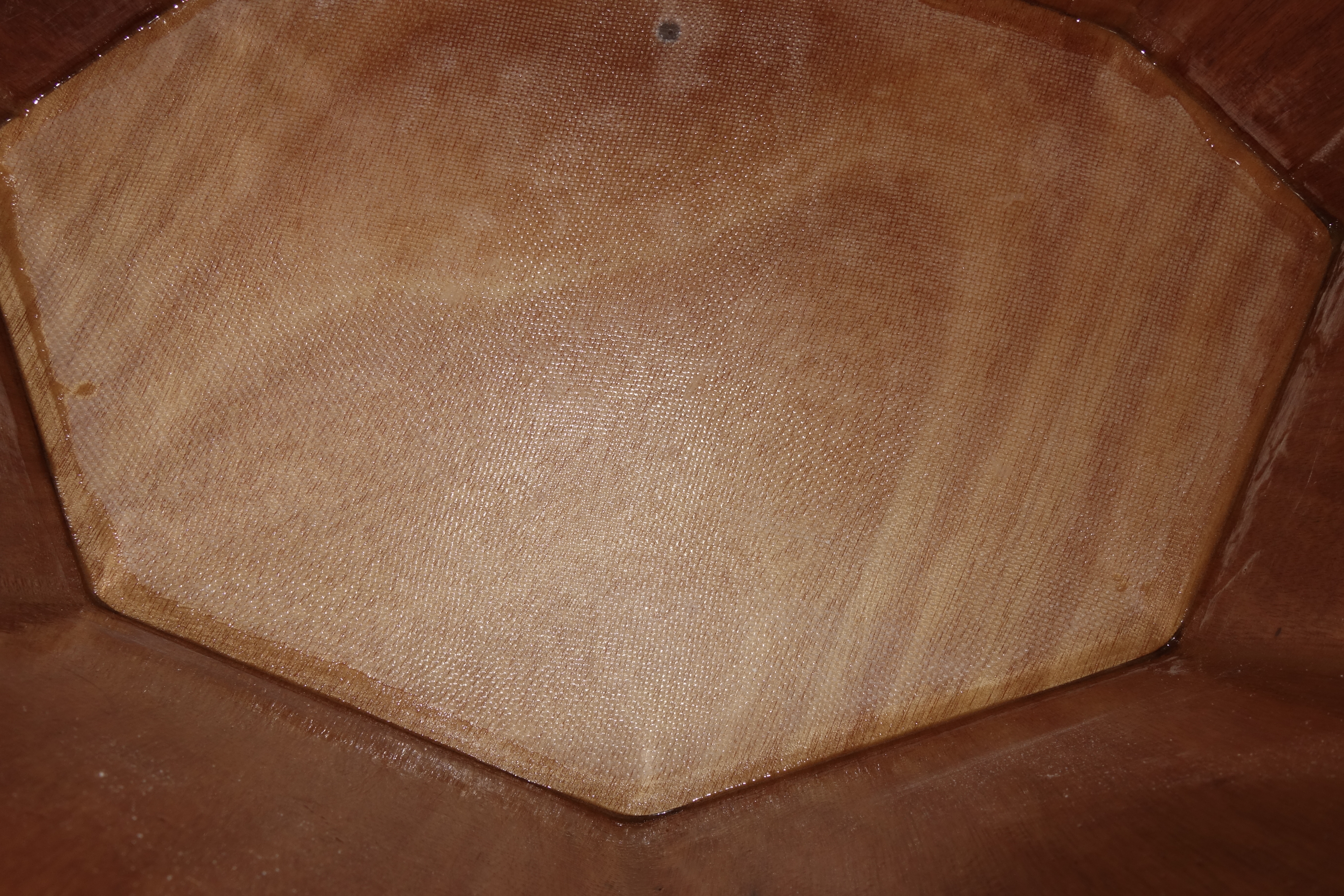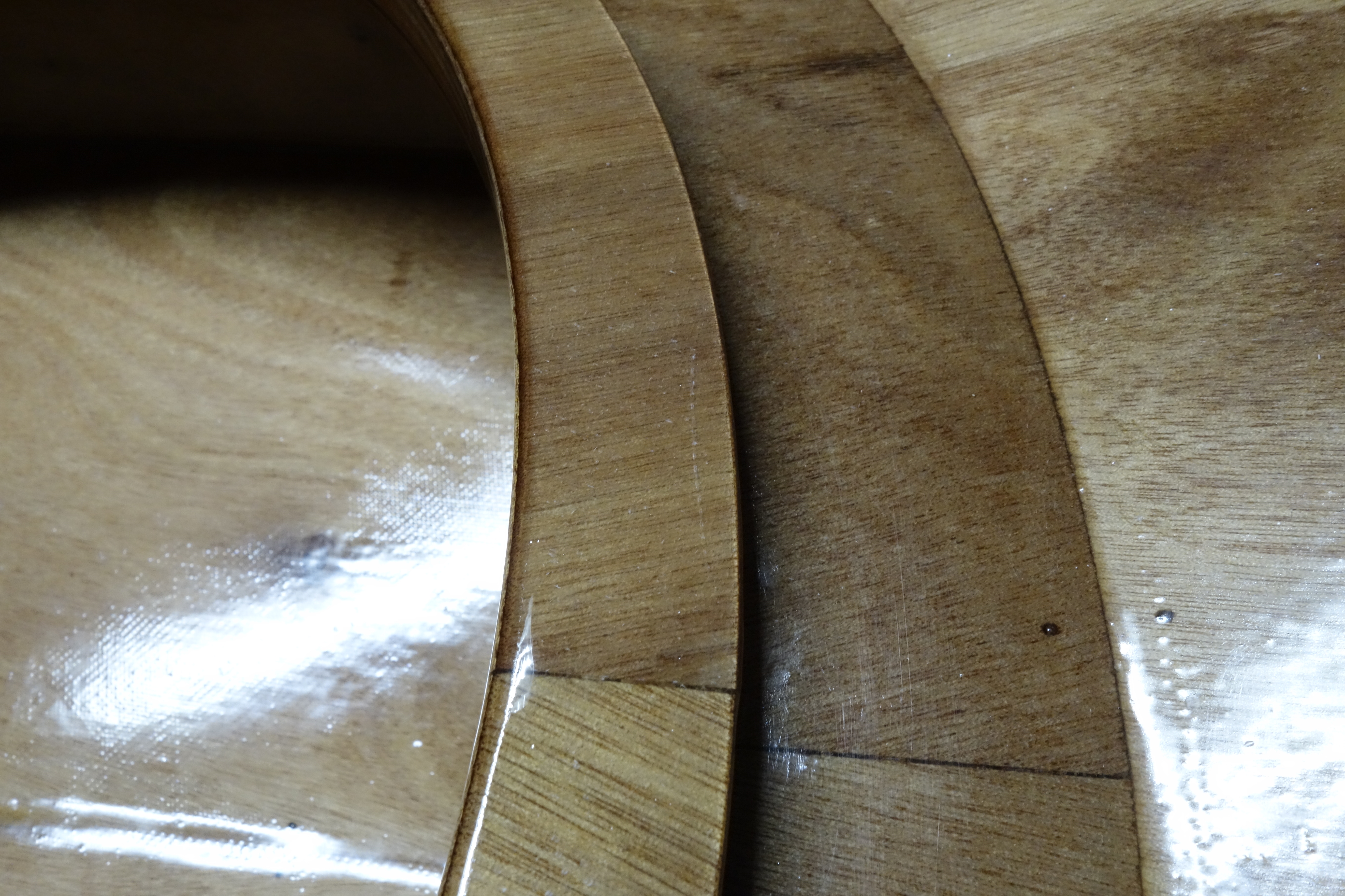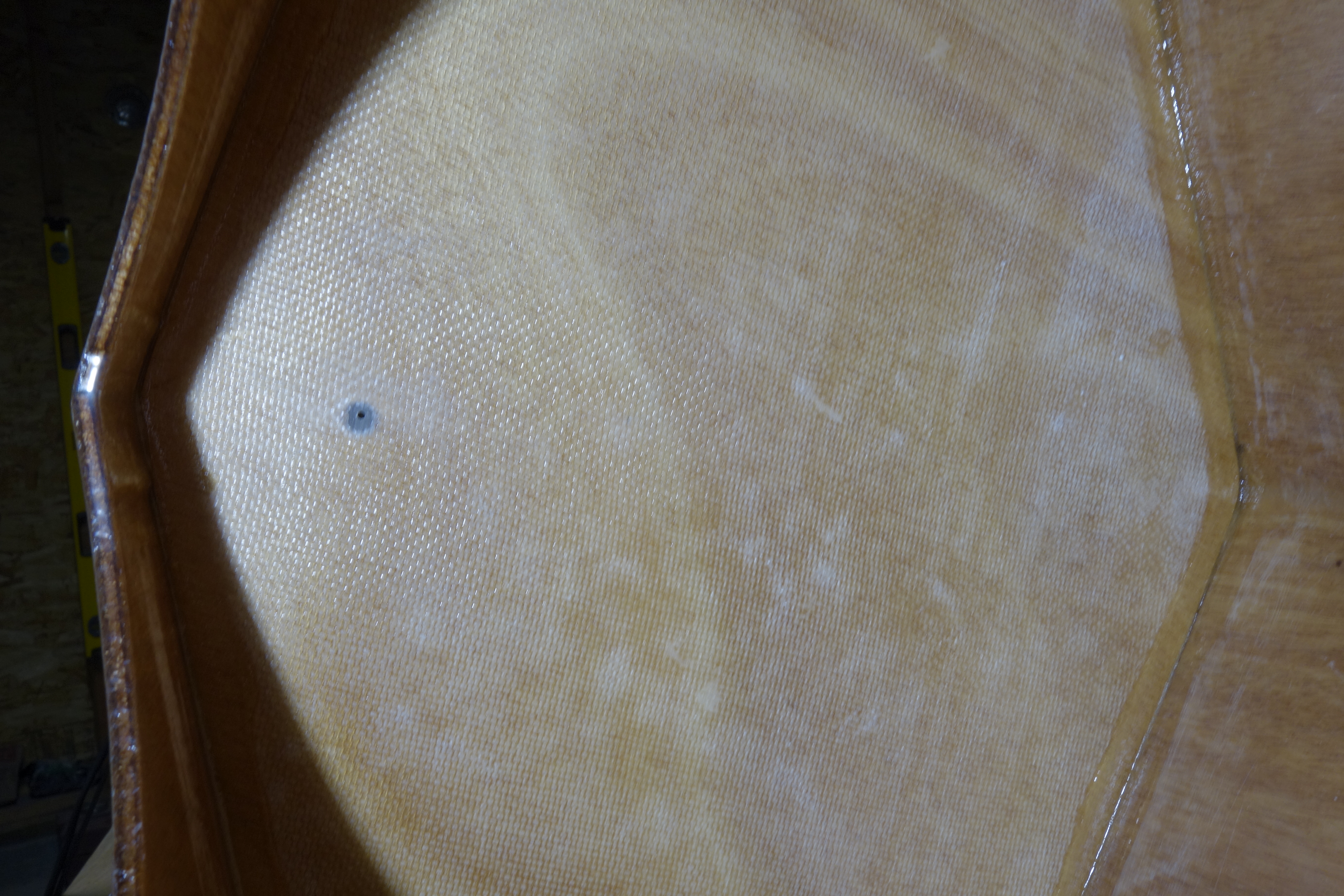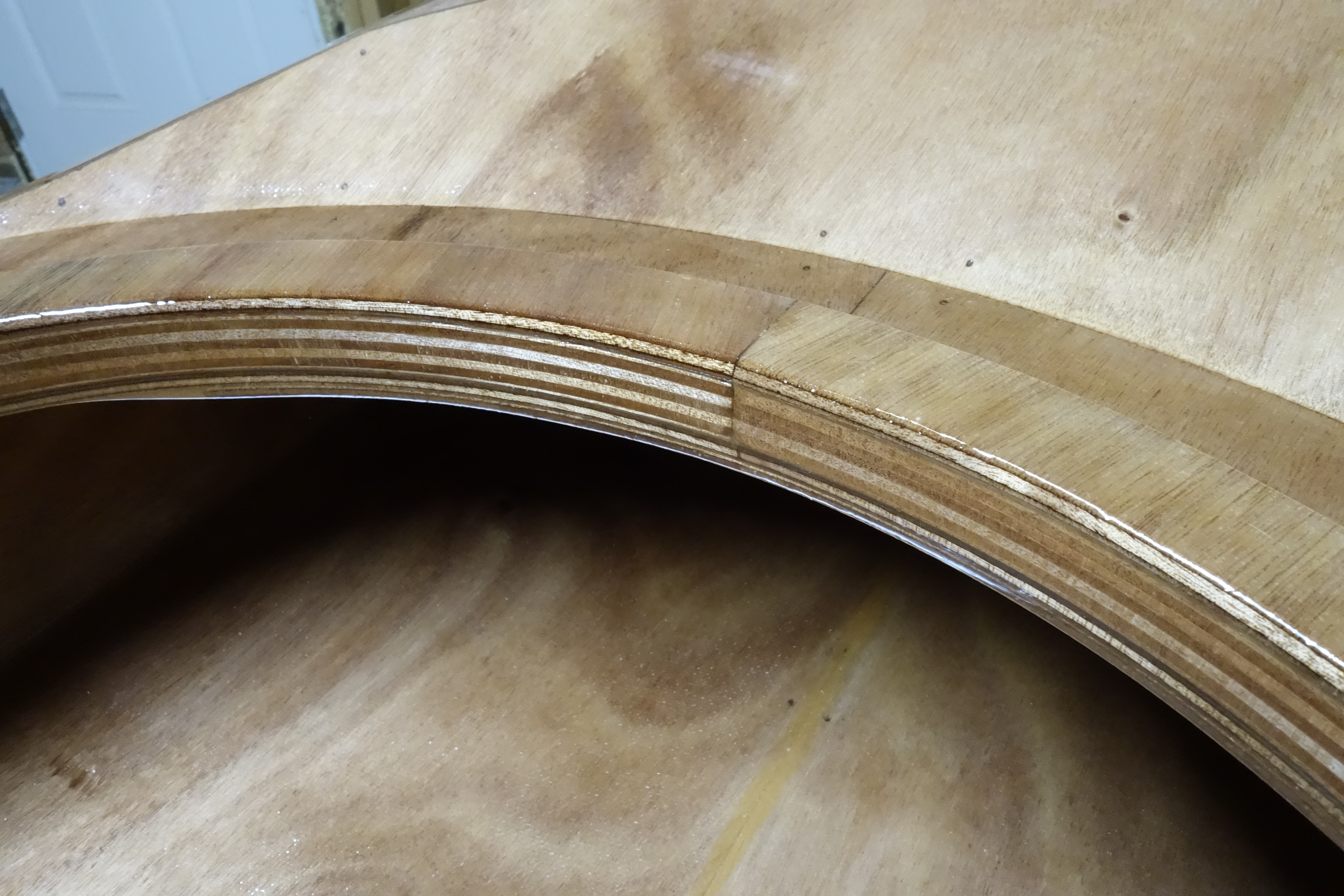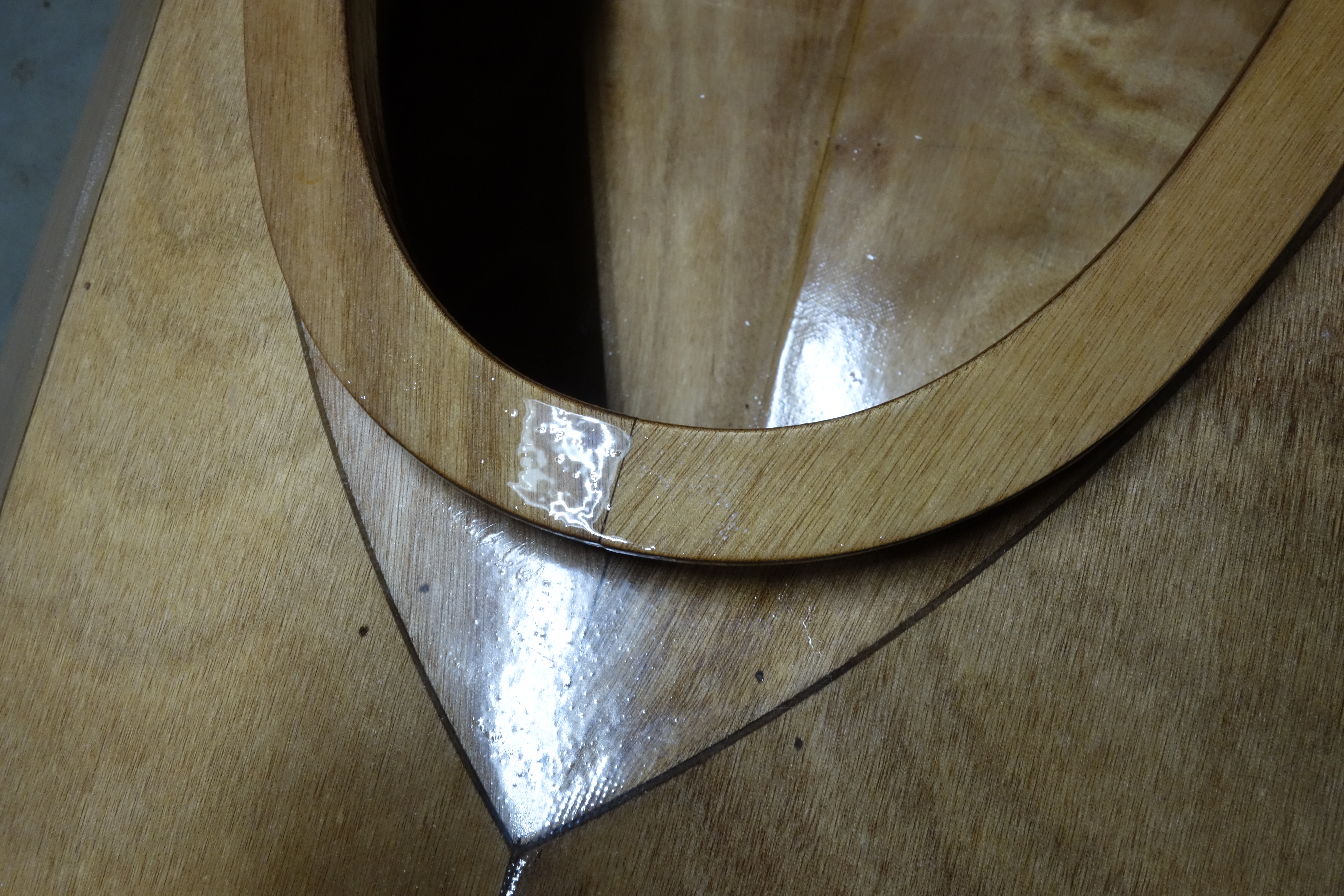 Front of the cockpit. The edges of this fiberglass cloth will get feathered in, and then fill coats of epoxy until it disappears. This will strengthen the coaming seams.Back of the cockpit.Hatch lips getting fiberglass cloth.