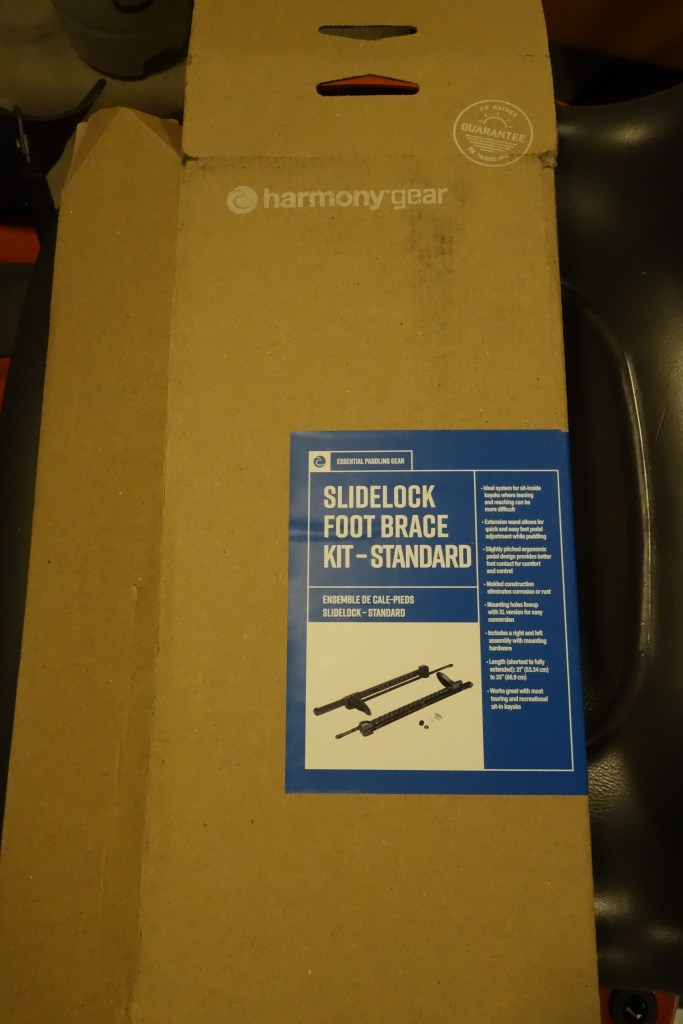 As I build the Rónán I am doing my best to ensure that each step is done exactly to Pygmy specifications. From my perspective there is a very good reason for this. John Lockwood has decades of experience designing and testing these beautiful boats so that they perform as beautifully as they look, and I want my kayak to meet those high performance standards. That said, one of the things that I really want in any kayak I paddle are foot braces that can be adjusted while I’m in the boat. I took a chance and ordered a Harmony Gear, Slidelock Foot Brace kit hoping that the hole pattern would be exactly the same as the rails for the Keepers Foot Braces that come in the Pygmy kayak kits, so that they would fit on the internal studs that I epoxied and fiberglassed into the boat. That way, I could have my Slidelock foot braces, and the foot brace placement would be exactly to spec. As far as I can tell, both kits are made by the same company so I had high hopes. I am happy to say they fit the studs perfectly!