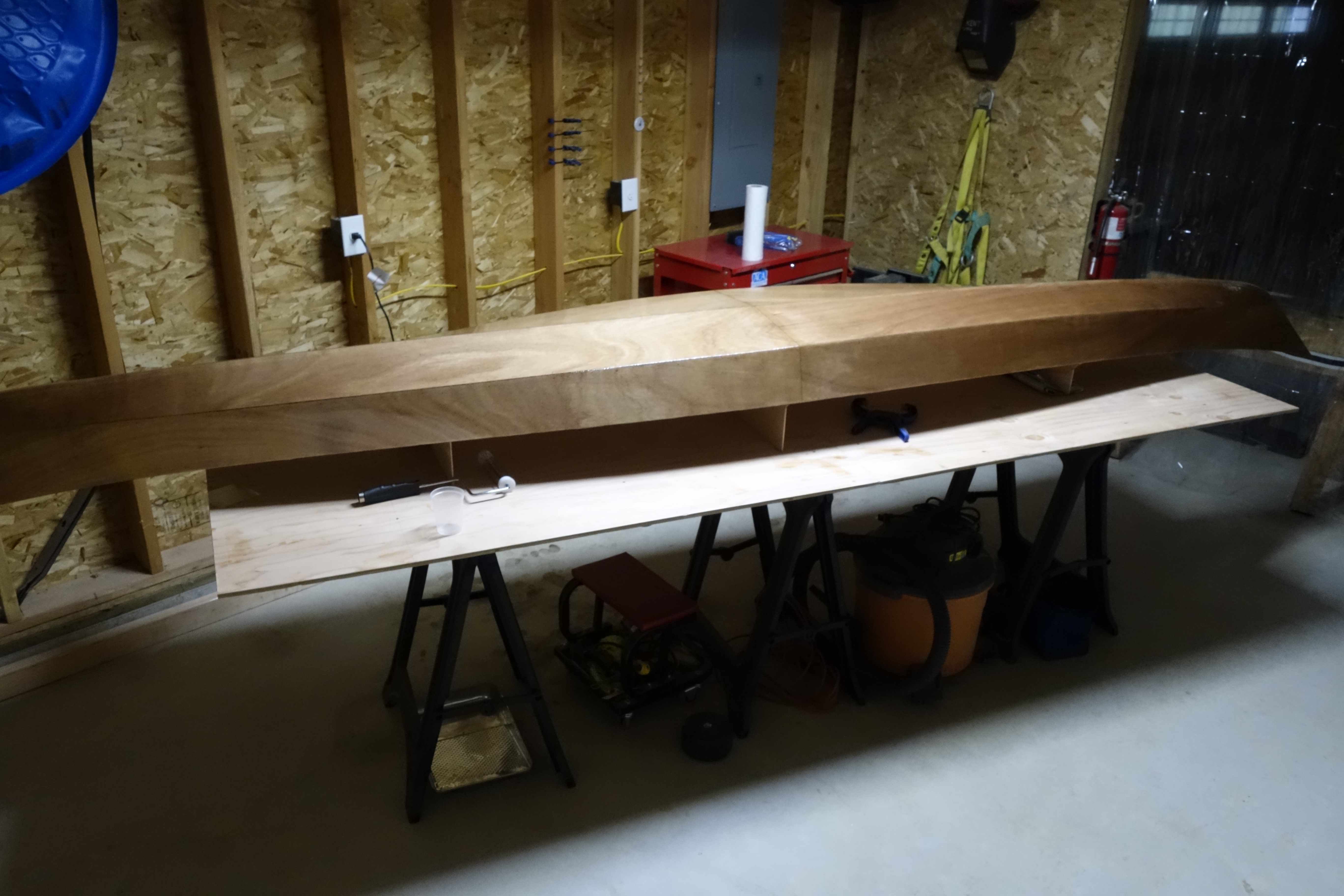 One of the wonderful things about building a kayak that is a composite of wood and fiberglass is that the end result is stronger than either wood, or fiberglass by itself. Another benefit is that a wood and fiberglass kayak will not sink, even if you fill the whole kayak with water! A fiberglass boat without supplemental flotation will sink like a stone if filled with water.