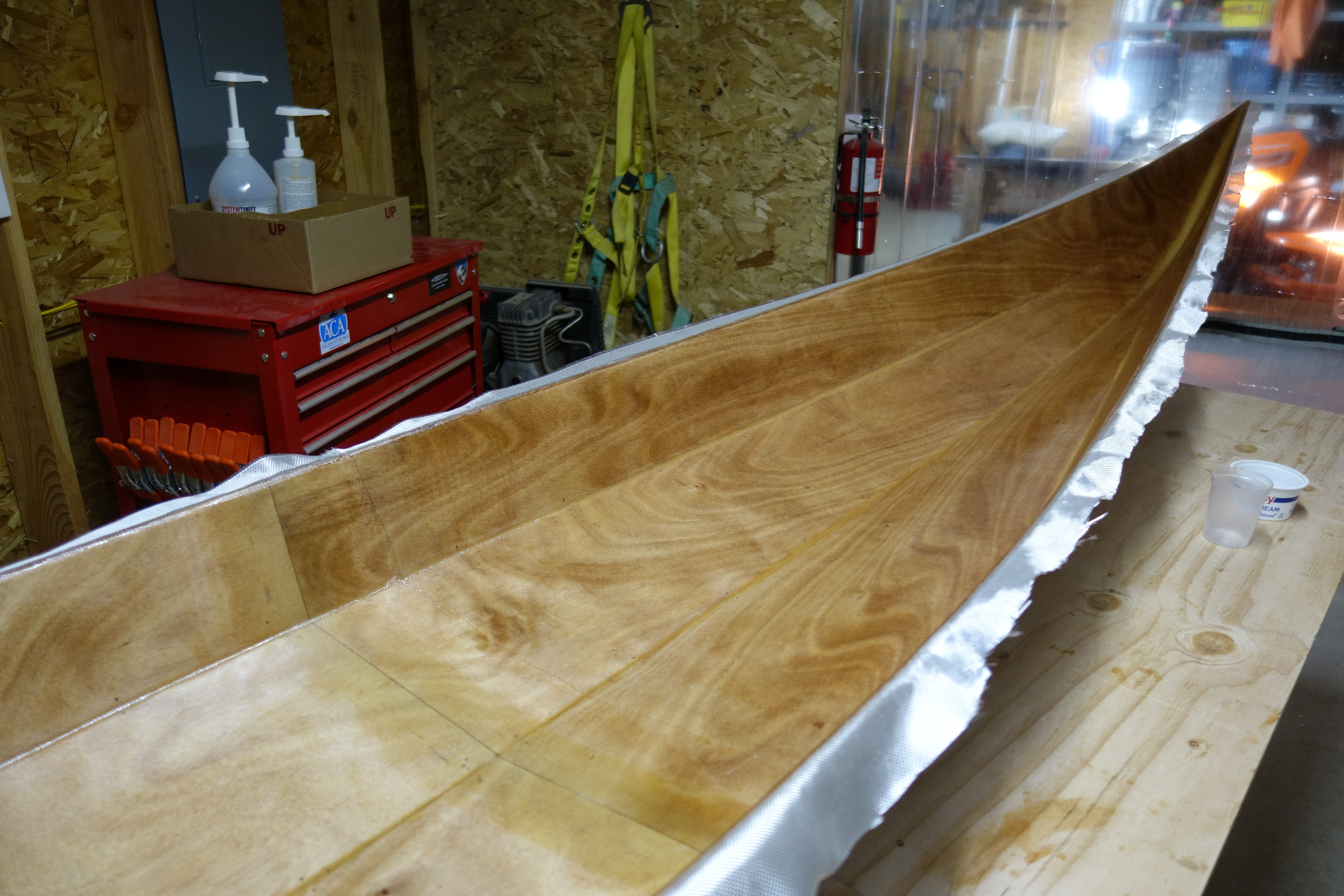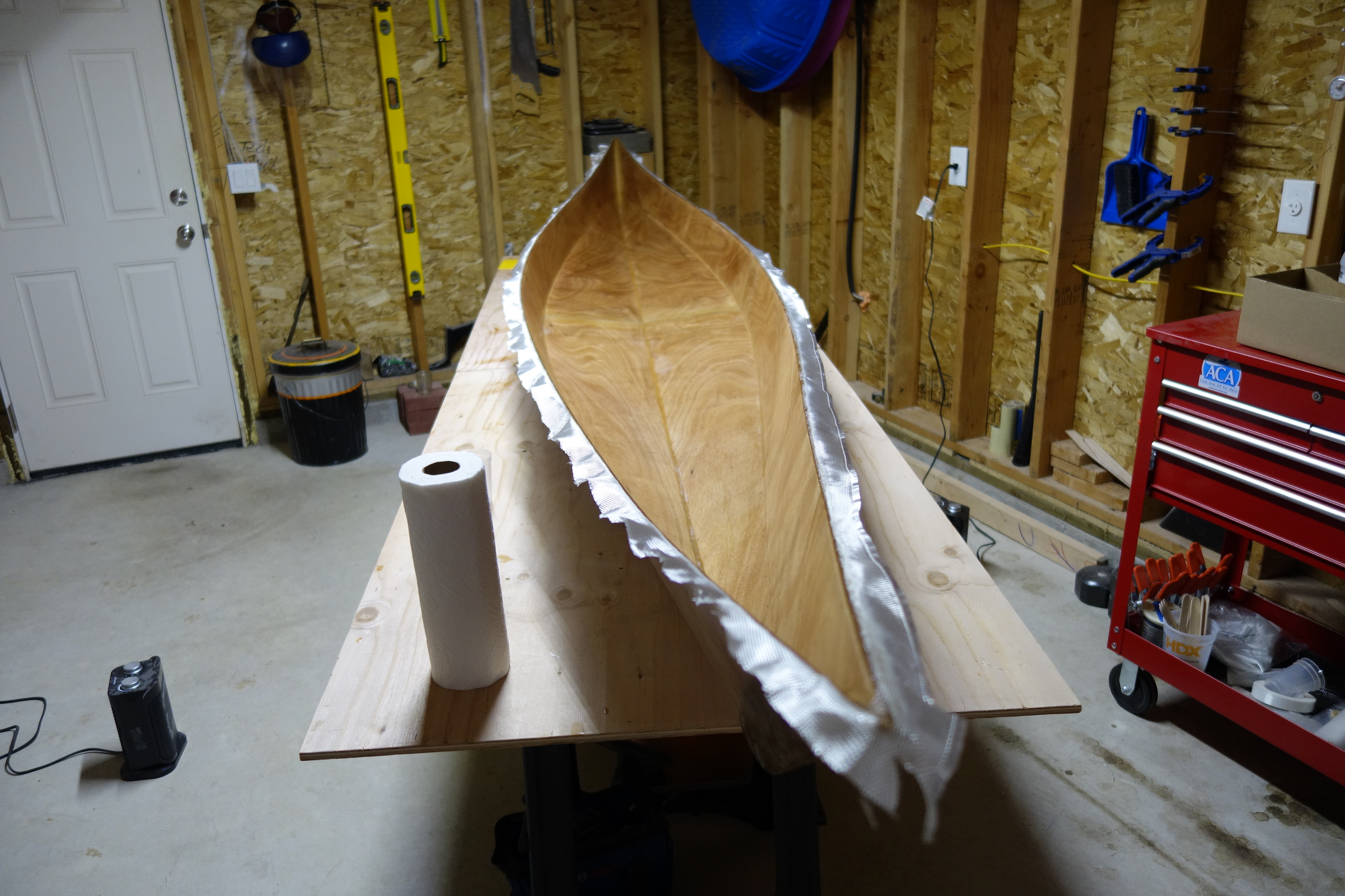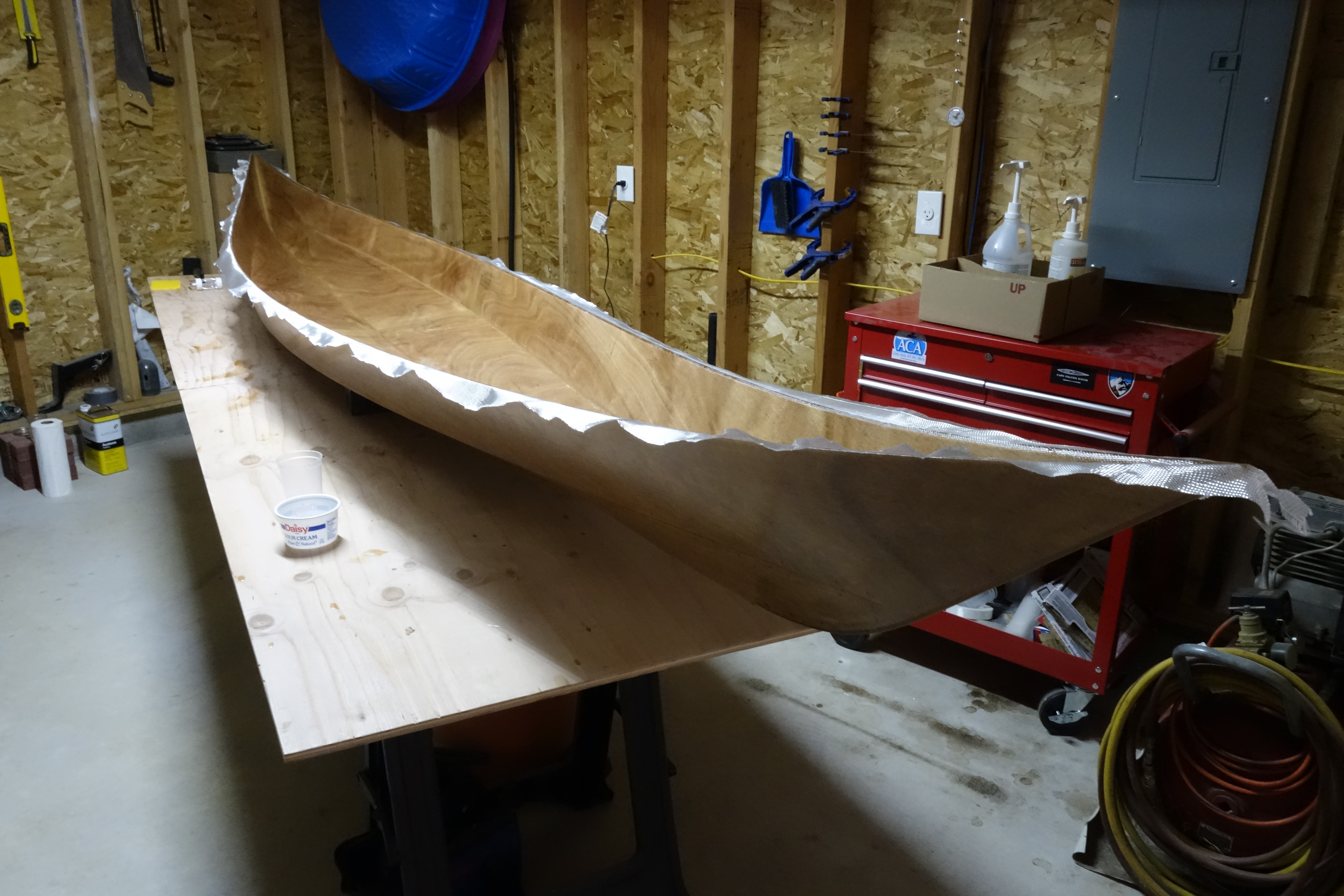 Major milestone. Gluing the deck to the hull! The kayak will be one piece by the end of the day.